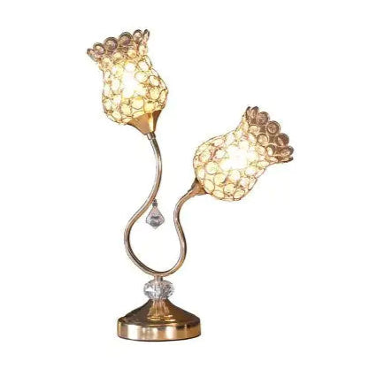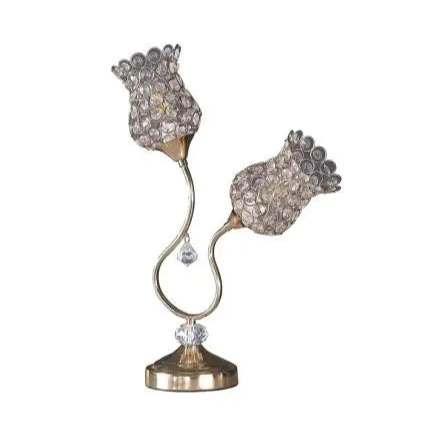 This exquisite table lamp features a delicate flower-inspired wire cage adorned with transparent acrylic beads. Finished in light rose gold chrome, the pendant and spherical accents add a luxurious, feminine touch to any bedroom, living room, or office setting.