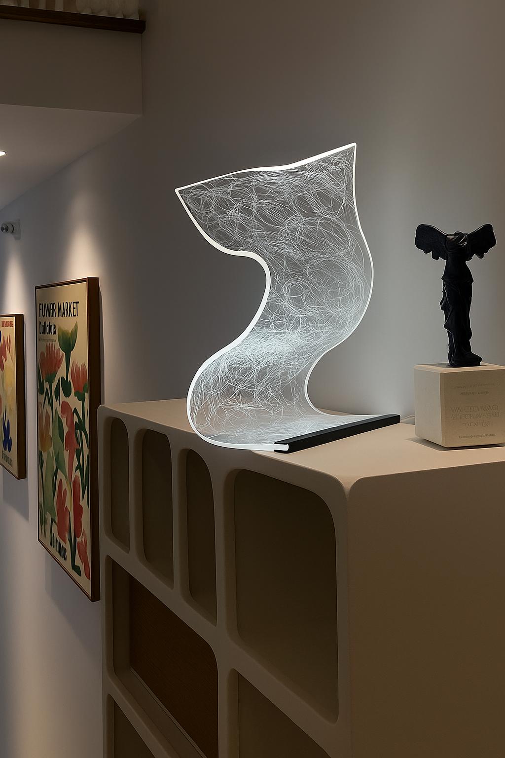 With its refined silhouette and contemporary appeal, this lamp blends seamlessly with modern or minimalist interiors. Compact in size yet striking in appearance, it fits effortlessly on any bedside table, console, or desk, adding a touch of elegance to your decor.